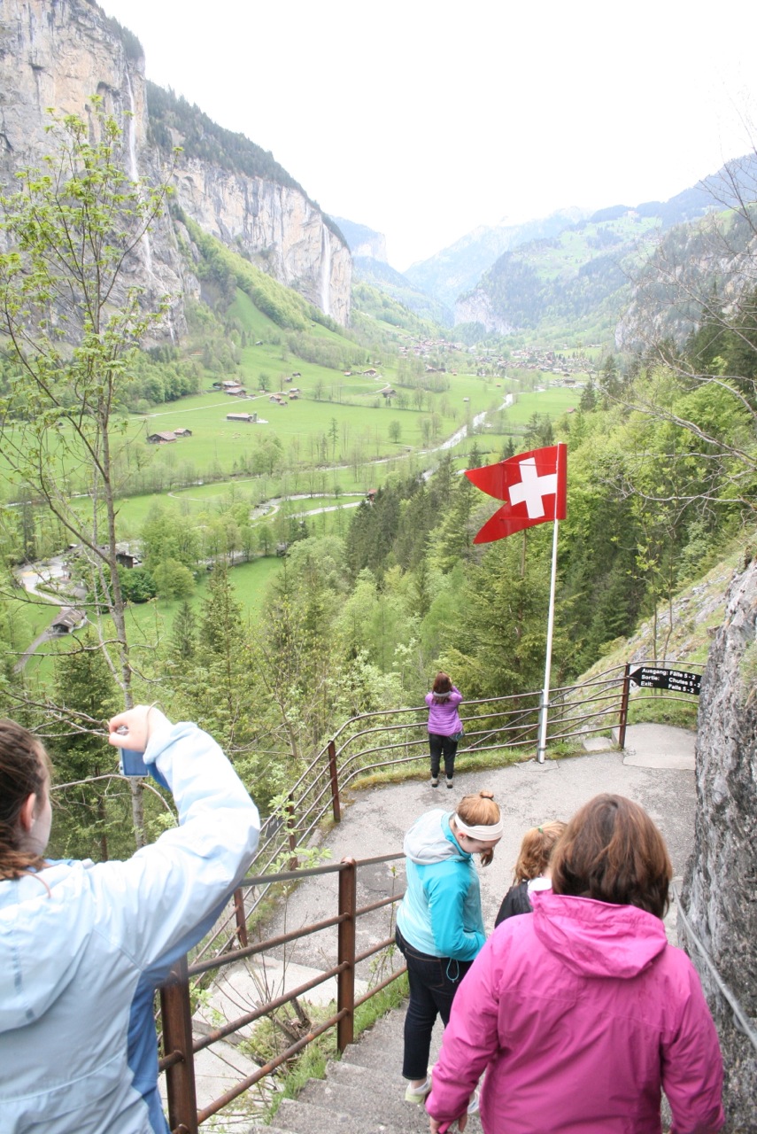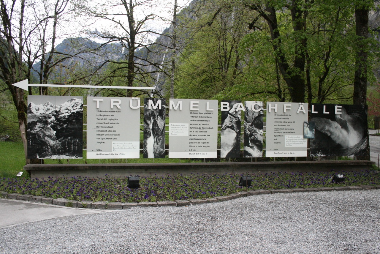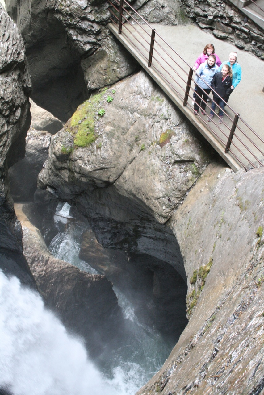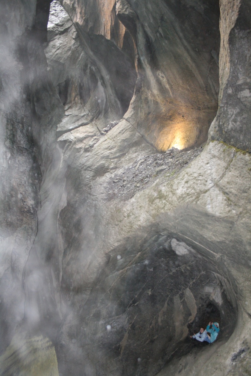 May 13th brought decent weather and a perfect day for seeing the surrounding villages of Wilderswil, Grindelwald, Interlakken, and Thun. We started at the Trummelbachfalle – (Trummelbach Water Falls) in Lauterbrunnen (just 10 minutes from Wilderswil) – This is a huge water fall located inside a mountain cliff, accessible by elevator and illuminated by electric lights. It’s an amazing hike through a mountain that was first discovered and made available to the public in about 1900. Awesome is the only word…