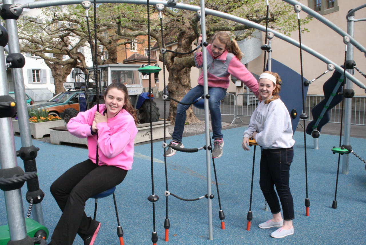 After putting our dinner food away, we headed down the lake on an amazing, terrifying, swirvy drive right out of a James Bond movie to a beautiful lake side castle near the city of Thune. The castle was closed, so we walked around the gardens and then played on the jungle gym located right outside the castle entrance…. Funny… thie girls loved this playground – all of them. They climbed and played and laughed for almost an hour!! They clearly needed some down time from seeing and learning and struggling with new languages.