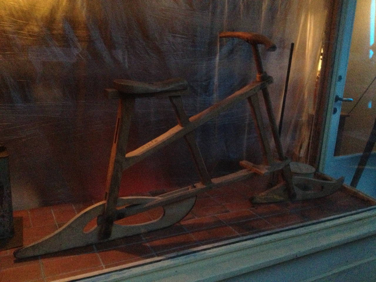 Pascal showed the girls an old grain mill. Wilderswil is a very old town and some of their neighbors’ houses go back to the 1500’s. Across the street was a funny little antique store that had an item in the window that is special to the Wilderswil area – specifically Grindelwald. It’s a snow bike called a Velogemel. They are still made in basically the same way, and although there are other more modern versions, these Velogemel’s are the real deal. This one in the window is possibly from the 1800’s. Each year in Grindelwald, they have a race. See it here.