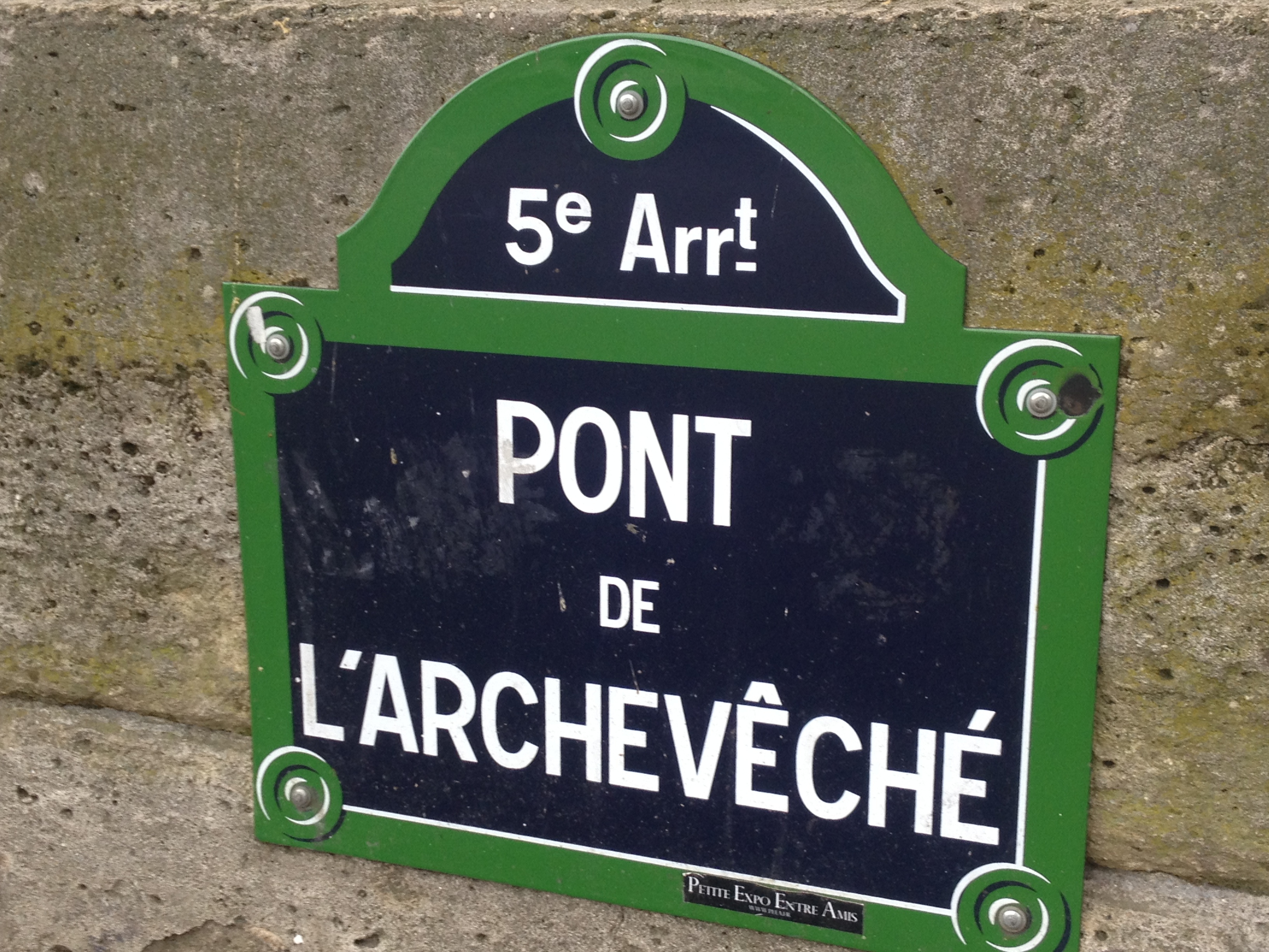 From here we began out walk home by crossing the Pont de l’Archevêché. This is one of the many bridges in Europe that has become a place for lovers to express their never-ending devotion. Wikipedia states: “In Paris, The Town Hall in May 2010 expressed concern over the growing number of love-locks on the Pont des Arts, Passerelle Léopold-Sédar-Senghor and the Pont de l’Archevêché bridges, stating: “they raise problems for the preservation of our architectural heritage”. The lovelocks of the Pont des Arts mysteriously disappeared during the night of 11 May 2010, but the Administration denied responsibility, until it was discovered that they had been removed by a student of the nearby École des Beaux-Arts to make a sculpture.[7] Love locks immediately began appearing on the Pont de l’Archevêché.”