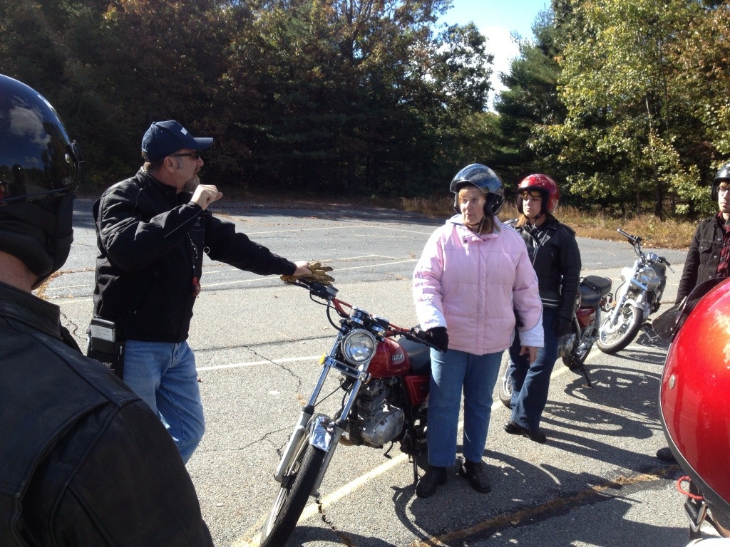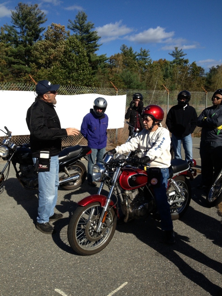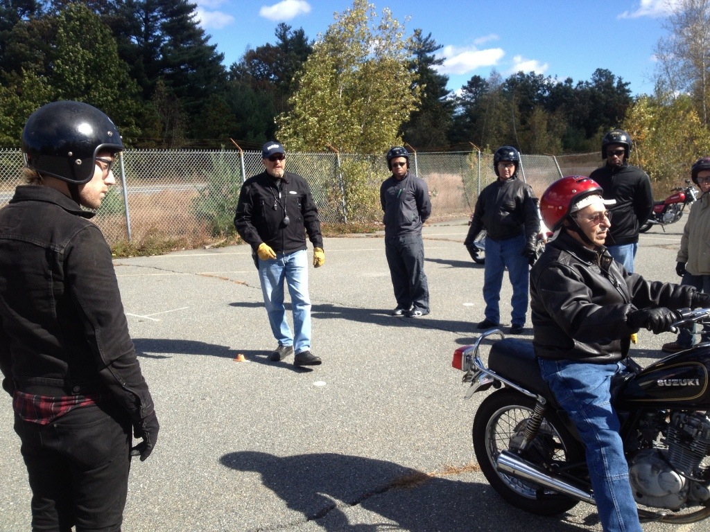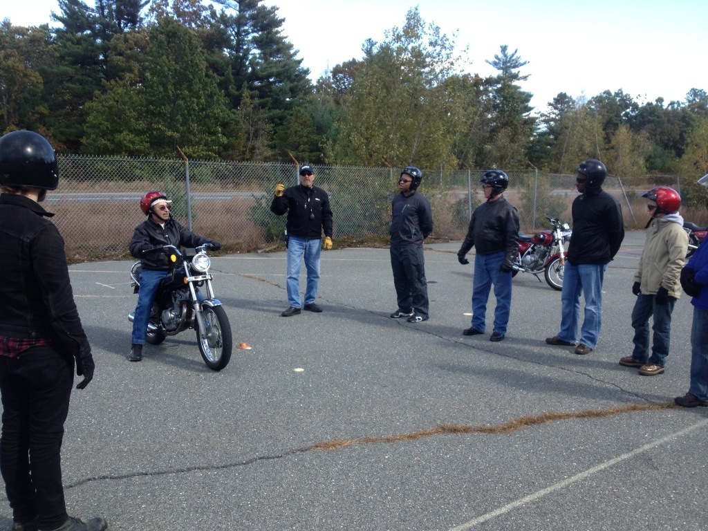 Bright and early on October 11th, I made my way on the new, old Honda to a classroom in Acton for motorcycle safety school. Two days of classroom and actual riding instruction will allow me to get my license and hopefully make me safer on the roads. The instructor, Dave, is a good guy and a bet experienced teacher. Below are a few photos of the students and their instructors on “the range ”